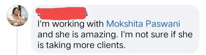 Mokshita gave me more value in one free call than I’ve gotten after spending big on courses.
